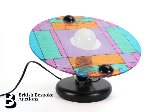 An unusual Italian coloured tapestry glass disc lamp, circa 1980's/90's, approx 35 cms diameter x 21 h cms.