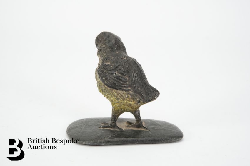 A late 19th century cold painted lead chick, its breast in tones of grey and yellow, 8cm high.