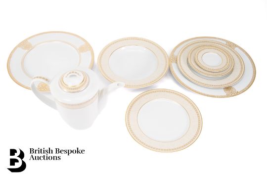 Part Christian Dior part tea service, including eleven 14.5 cms diameter, eleven 11 cms diameter, ten 21 cms diameter, four 22 cms deep bowls, five 27 cms dinner service and one coffee pot.