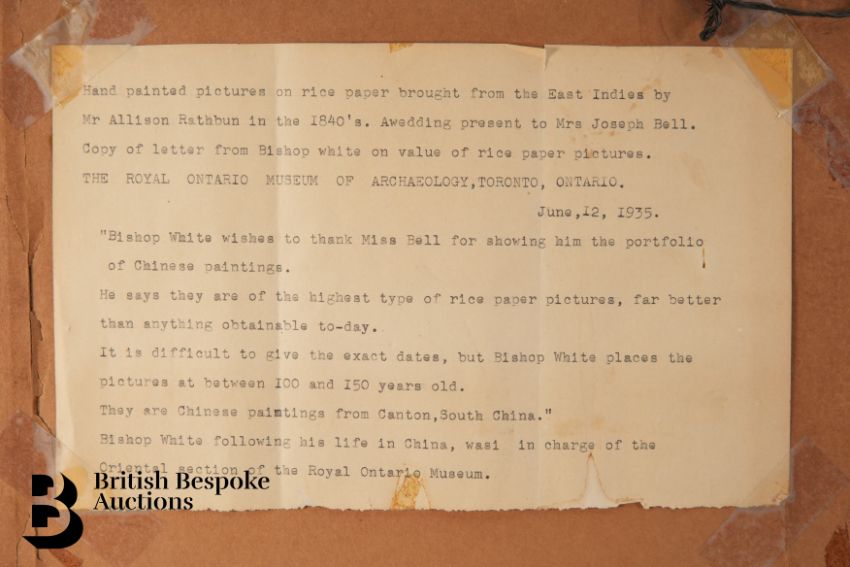 Provenance to verso reads as follows: Brought back from the East Indies by a Mr Allison Rathbun in the 1840's who gifted the paintings to Mrs Joseph Bell as a wedding present.