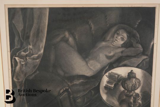 A feminine nude, titled and signed in pencil to the lower right margin 'Ma mere au gout Anglais', indistinct signature, approx 35 x 31.5 cms, framed and glazed.