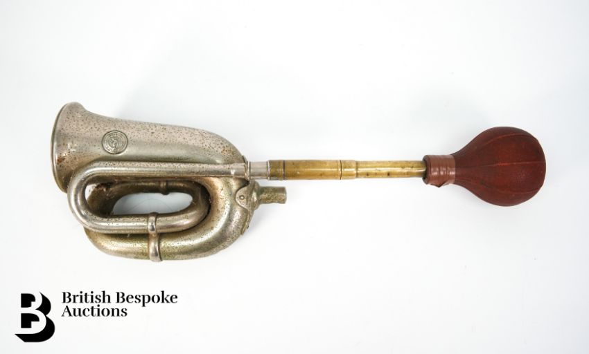 A circa 1920's nr 38 Lucas 'King of the Road' nickel-plated motor car horn, with bulb, approx 48 cms in length.