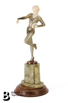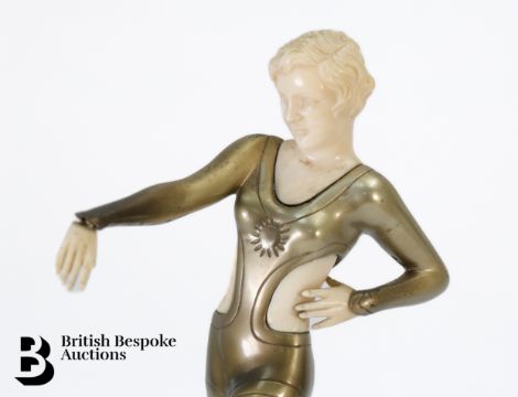An Art Deco patinated bronze and ivory figurine, raised on an onyx base, approx. 30.5 cms h, signed Lorenzl, she is depicted in pose with her arm outstretched.  Exemption Certificate M78MSZ29.