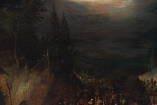 Note: David Vinckboons (1576-c.1632) was a Dutch Golden Age painter born in Mechelen, Southern Netherlands. A prolific and popular painter and print designer who was much influenced by Pieter Bruegel the Elder. A similar subject by Vinckboons can be found in the Bavarian State Painting Collection entitled Kreuztragung Christi. (*cr)