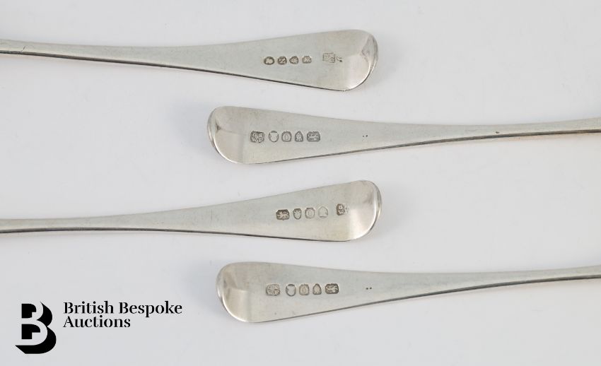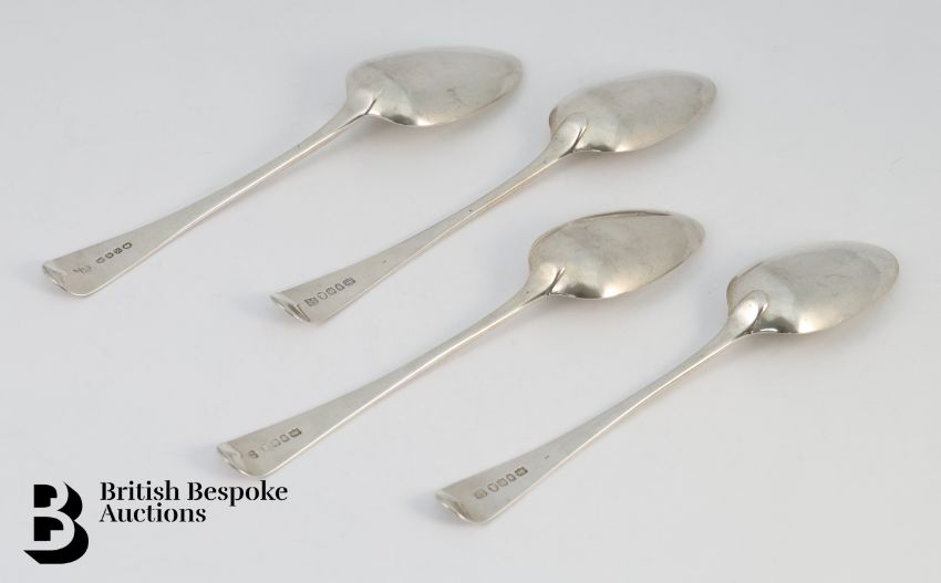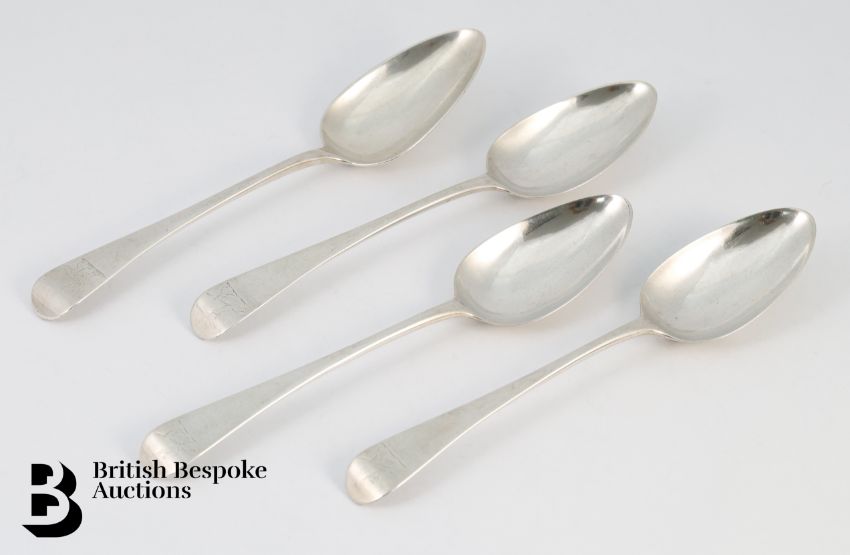 Four silver Georgian silver tablespoons, London hallmark dated 1788 and 1789, mm George Smith (III) & William Fearn, approx 250 gms.