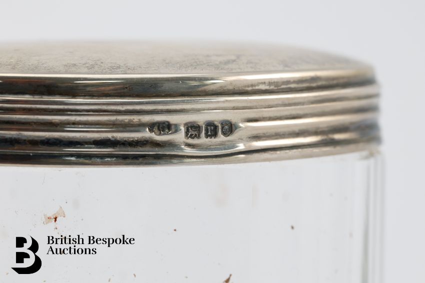 Seven silver topped and glass vanity jars, London dated 1911, mm T & FP and other makers.