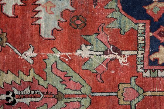 This carpet has damage due to age which has had some poor repair and will need attention.