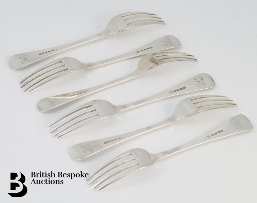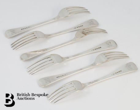 Six silver table forks, London dated 1833, mm Henry & Charles Lias, 400 gms.