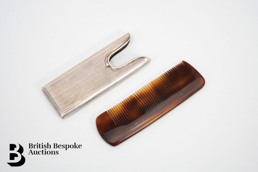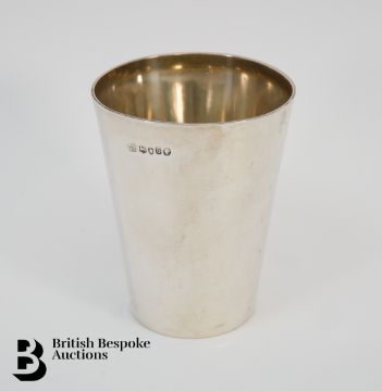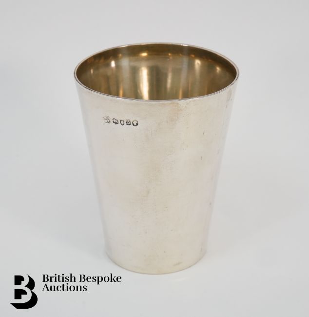 A Victorian silver beaker, London hallmark dated 1873, mm H J Lias & Son (Henry John Lias & Henry John Lias) together with a pocket comb with silver case, Chester hallmark dated 1898, 149.7 gms, monogrammed AB.