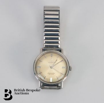 A gentleman's vintage stainless steel Omega Seamaster De Ville wrist watch. The watch having a champagne face with baton markers, 34mm, on a stainless steel Speidel watch strap.