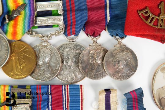 Great War medal group, named to Major Montagu Chenevix Baldwin 2-8 Gurkha Rifles, comprising Military Cross (1914-20), British War medal, Victory medal with oak leaf, India General Service medal with clasp for the following: Afghanistan N.W.F 1919, Malabar 1921-22, North West Frontier 1930-31, and a Delhi Durbar medal 1911 (silver issue), George V and Queen Mary commemorative medal and George VI and Queen Elizabeth commemorative medal together with associated miniatures, British Indian Army 1st Punjab brass shoulder badge and a portrait miniature photograph (presumed) of Major Baldwin and his wife in a 9ct gold frame.