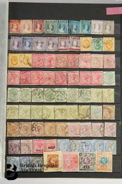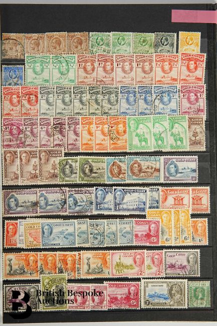 Blue WHSmith stockbook containing Nepal including early issues with mint blocks, some covers or fronts; Hong Kong with early issues; Gold Coast; Natal with early issues; and others. Hundreds of stamps.