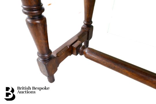 A near pair of antique 19th century oak side library table, with black leather insert, turned legs on turned stretcher with a central turned support, approx. 240 l x 60 w cms.
