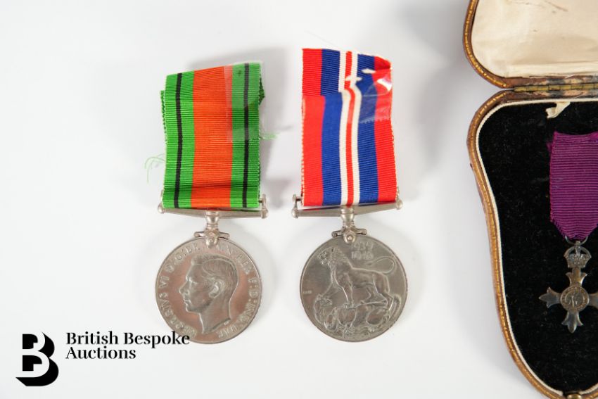 WWII Service medals, 1939-45 Star, The Italy Star, Africa Star, War medal 1939-45 and Defence medal together with a miniature Order of the Empire medal.