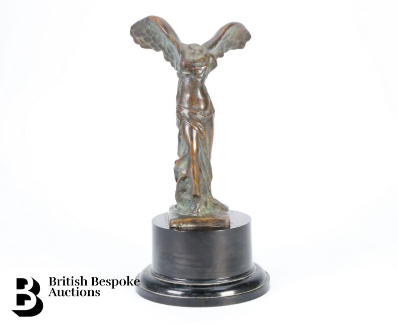 After the Victory of Samothrace, a bronze radiator mascot, designed by artist Max Le Verrier (1891-1973) it is stamped Le Verrier and Editeur to the side of the base area, also stamped bronze, reputedly adopted by prestigious French car maker, Automobiles Lorraine-Dietrich, and fitted to their cars in the Edwardian period, approx 19 cms h.