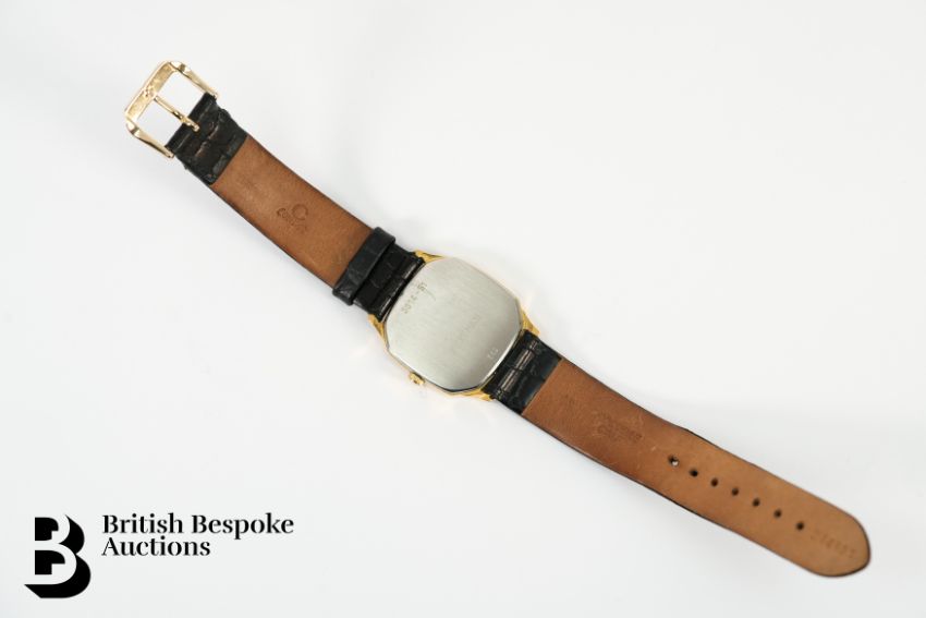 A gentleman's Favre Leuba stainless steel gold plated wrist watch.  The case measures 30mm, having a gold striped face with quarter markers, Quartz movement, on a crocodile calf strap.