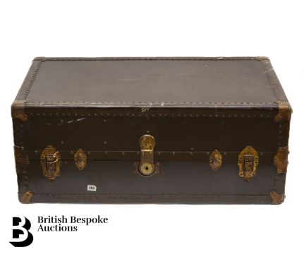 Vintage brown steamer trunk, early 20th century, with a fitted interior for storage of shoes and accessories, approx 97 x 57 x 40 cms.