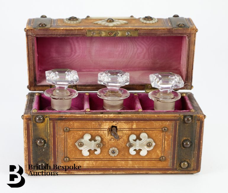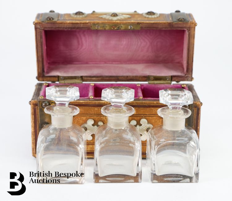 Two scent bottles in good condition, one with chips to the rim, all stoppers are present and correct.