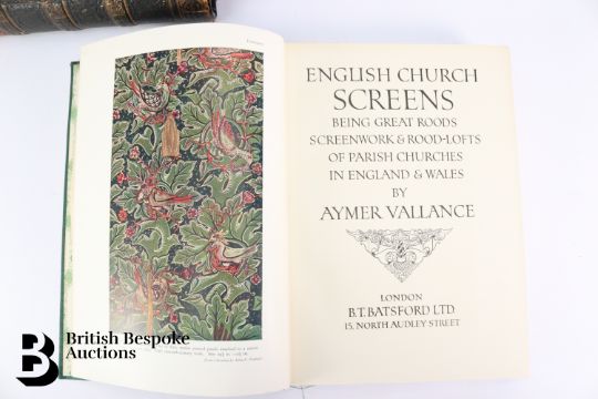 English Church Screen by Aymer Vallance published Batsford 1936 1st edition, green gilt cloth, torn on spine. 288 Illustrations, front and rear hinges loose.