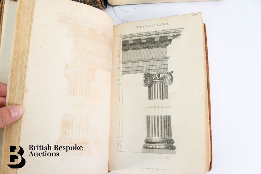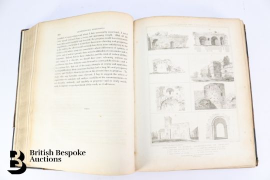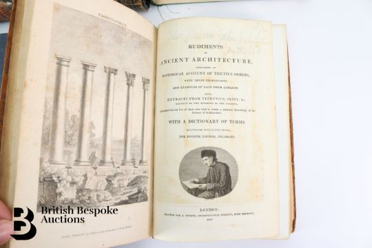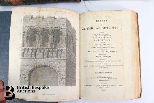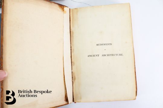 Rudiments of Ancient Architecture with a dictoriary of Terms 4th edition, Lodnon 1810, 20 plates. Bound with Essays on Gothic Architecture by Rev. Warton, Rev Bentham, Captain Goose and Rev Milnet, 3rd edition 1808, 12 plates. Original calf binding with basic repair to spine.