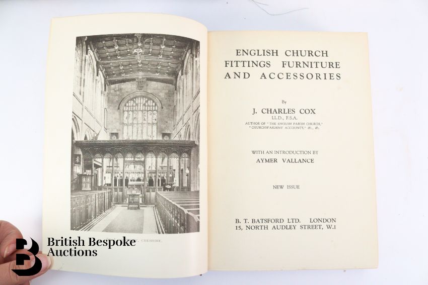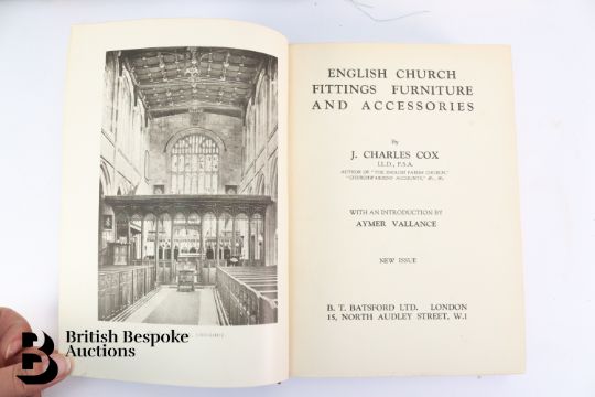 English Church Fittings, Furniture and Accessories by Charles Cox, published Batsford 1933 new issue, faded to spine.