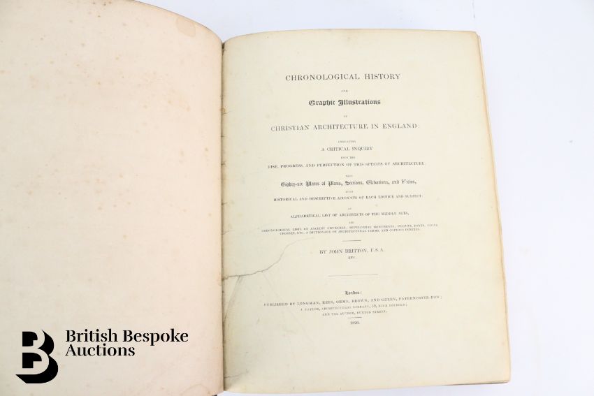 Chronological History and Graphic Illustrations of Christian Architecture in England by John Britton published London 1826. 85 Full page engravings including A Pugin. New end papers and restoration to spine.