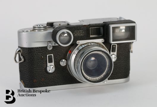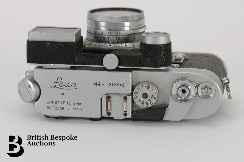 Ernst Letiz Leica M4 Rangefinder camera, chrome and black finish, serial nr 121542, with a Leitz Summaron f=35mm nr 1362867.
