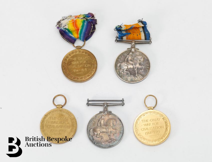 British War medal 10141 Pte D.C.Loney H.A.C Infantry and Victory medal, another set named to 36514 Pte. M.J Crandon D of Cornwall L.I and Victory medal together with another Victory medal named to 24887 Pte W.H Stamp E. York Regiment.