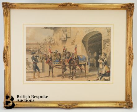 William Henry Lake Price, hand coloured lithograph entitled Mules of the Plaza de Toros and Alguazil delivering keys of the Toril circa 1860-1870, from The Spanish Bull Fight series, framed and glazed by H W Keil's Broadway.
