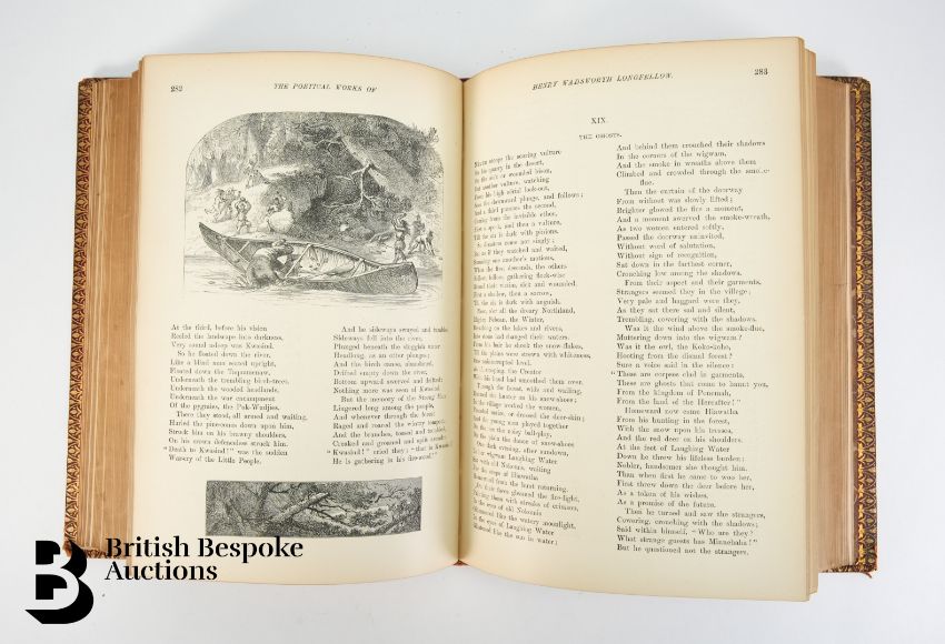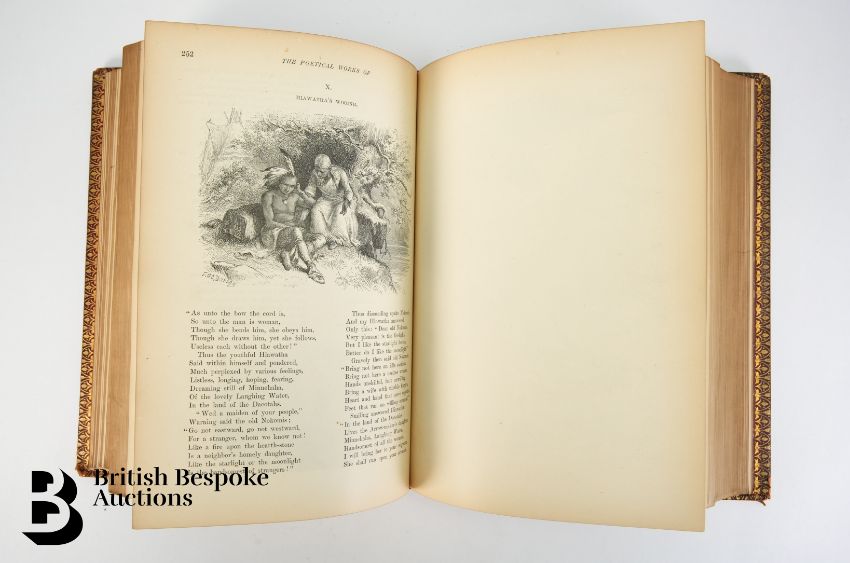 The Poetical Works of Henry Wadsworth Longfellow, publ. Cassell & Company Ltd, London, 1891, marbled end papers, illustrated with engravings, complete with red tooled leather binding, panelled and gilt decorated spine.