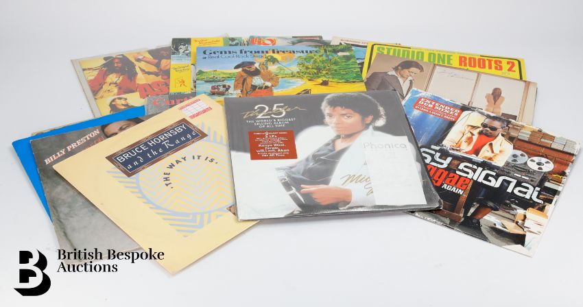 Large quantity of 12" singles and LP records, including RnB, reggae, blues, hip hop, and some popular. Including Michael Jackson, The Jacksons, Bob Marley, Aswad, Gregory Isaacs, Dionne Warwick, Luther Vandross, Stevie Wonder, artists' promotional records, etc. Mixed condition, ex collection of a DJ.