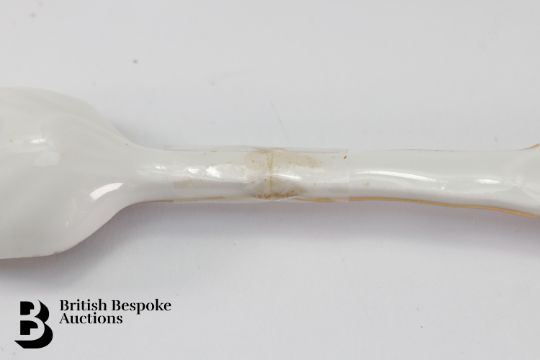 One spoon showing signs of repair. Fine crazing to the base of the bowl.