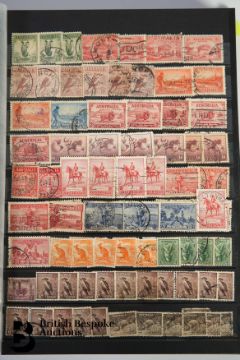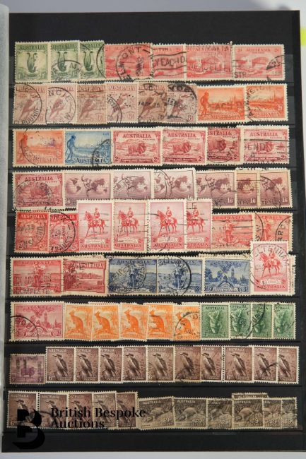 Collection in blue WHSmith stockbook containing Australia from 1913 'Roos' (including £1 grey specimen) and 10s fair used up to modern day. Some Australian Antarctic Territory and a couple of other countries but stockbook largely filled with Australia.