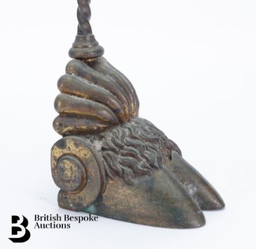 19th Century bronze door stop, cast as a cloven hoof, with remnants of gilding, approx 44 cms h.