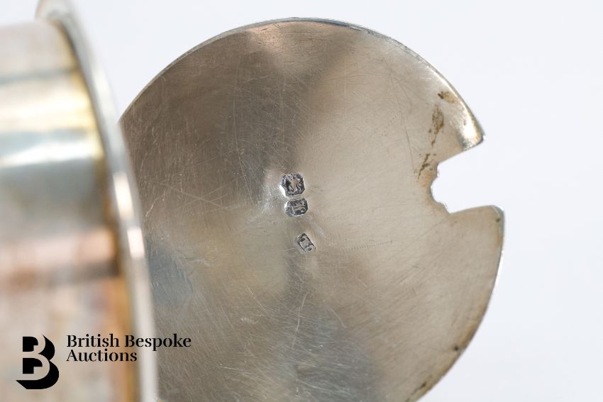 George III silver mustard, with glass liner, London dated 1876, mm Charles Lias, approx. 119 gms/4.2oz together with a silver Old English pattern mustard spoon.