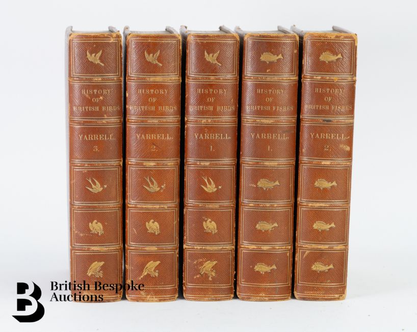 Yarrell, William F/L/S.,V.P.Z.S, History of British Birds, 3rd edition, illustrated in three volumes, publ. Van Voorst, Paternoster Row, bound in brown leather with gilt-lined borders.