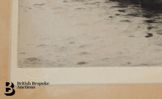 Two Roland Langmuir (1897-1956) drypoint etchings, both academy proofs, including The Tower of London, and St Pauls Cathedral, both signed in the lower right margin, approx 30 x 21 cms. Together with another drypoint etching by Edgar James Maybery titled Royal Exchange London, signed in the lower right margin approx 23 x 18.5 cms.